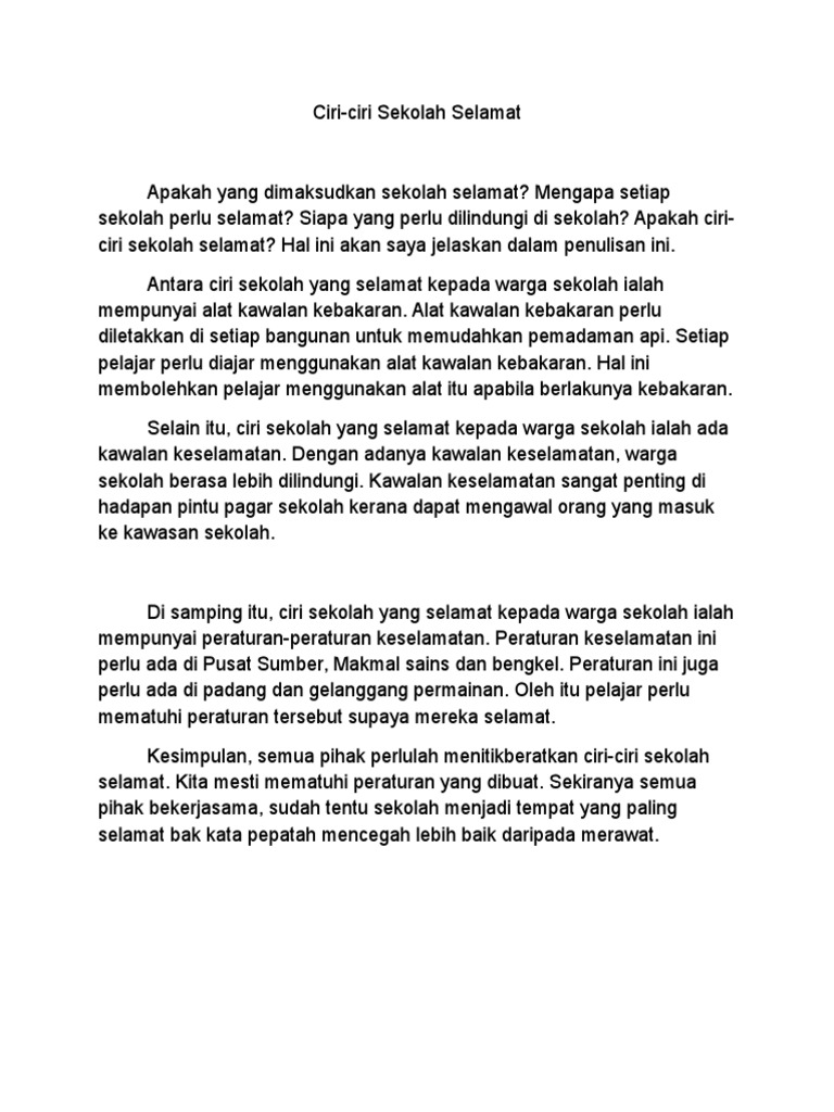 Karangan A Ciri Sekolah Selamat Pdf